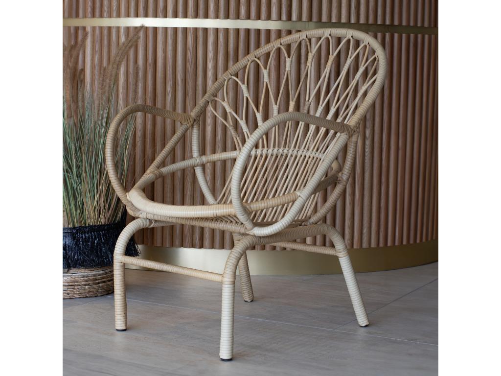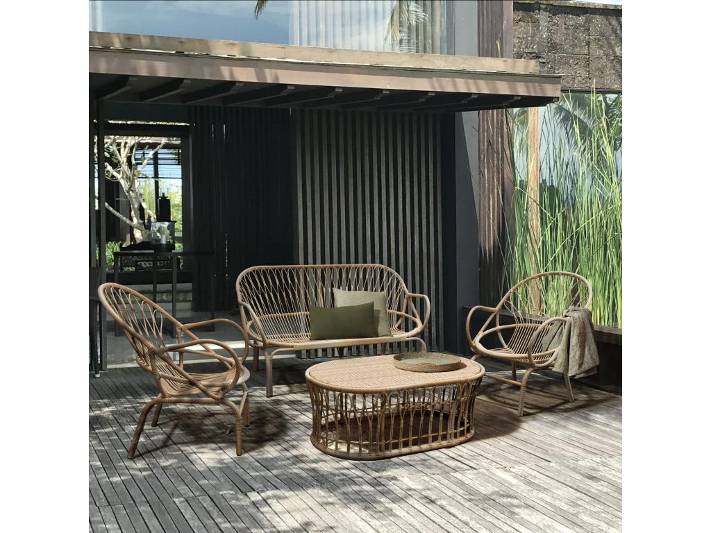 Home presents an outdoor three-seat lounge set that combines a woven rattan-braid design with a metal frame. Perfect for patios, terraces, or garden spaces, it delivers a contemporary look with practical seating for outdoor living.
