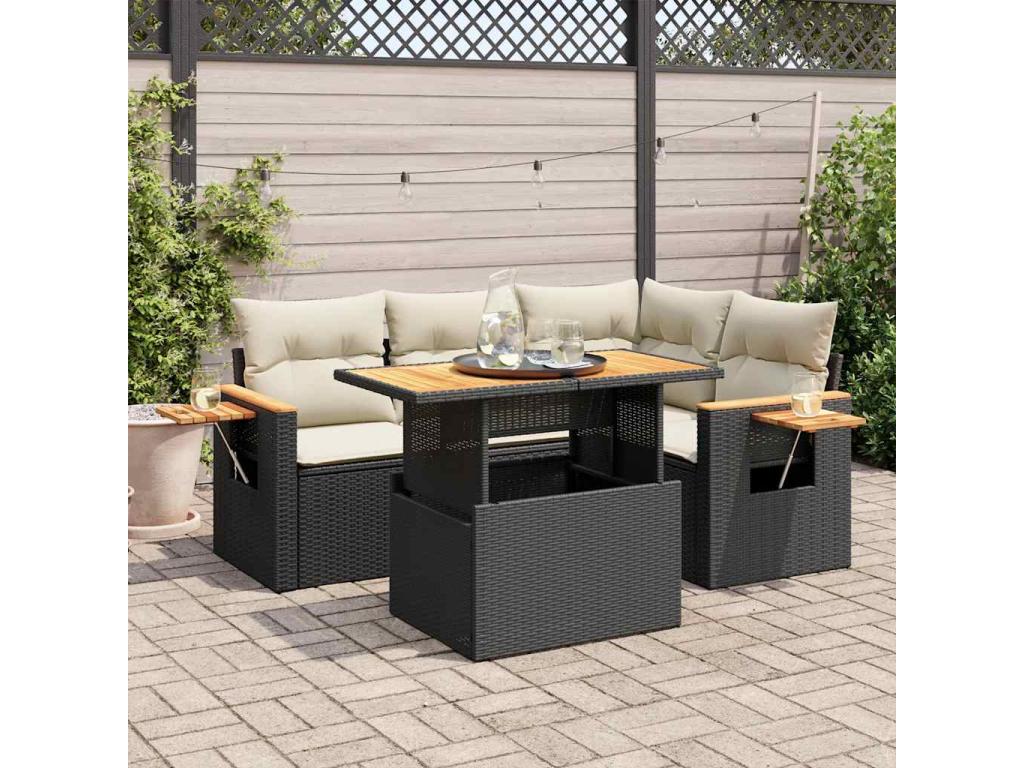 Acacia Resin-Woven 5-Piece Outdoor Set Black Cushions